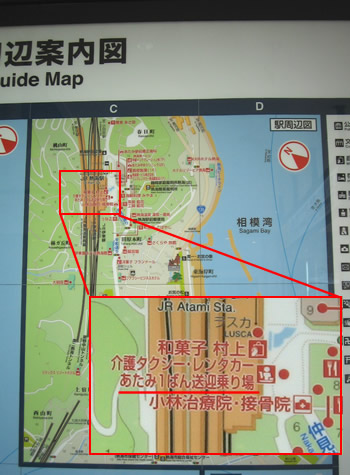 あたみ1ばんは熱海駅の案内板に送迎乗り場がしっかり記載されています。観光や地元のお客様の信頼にしっかり答えている証です。