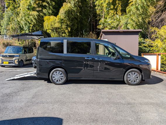 乗務員含む6名乗車可能(乗客5名)で、後方スロープ付車いすのままでも乗車可能な車両を新たに導入致しました。皆様のご利用お待ちしております。